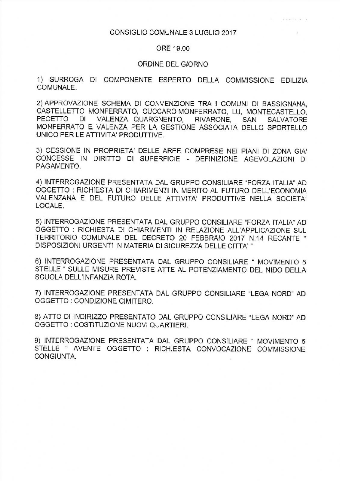 Per conoscere l'ordine del giorno del Consiglio comunale convocato per lunedì 3 luglio, alle ore 19,00, leggi l'allegato