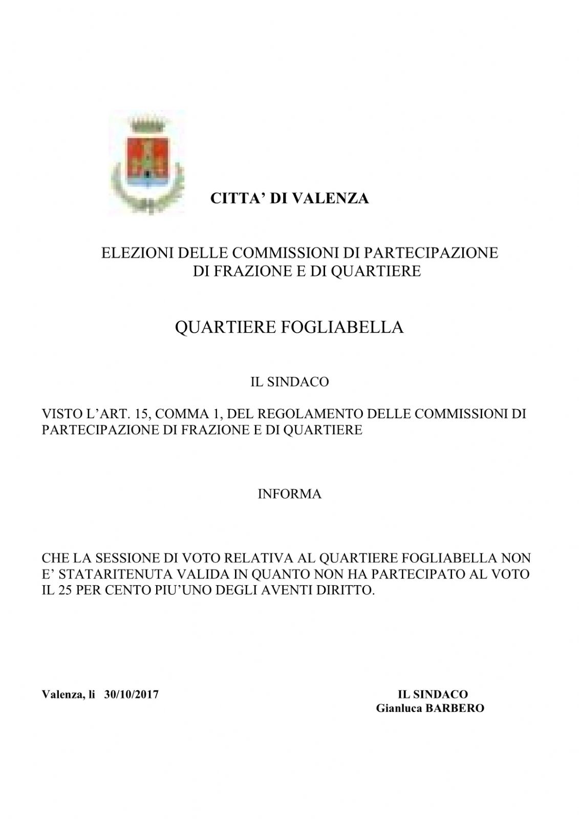 In allegato, il risultato delle votazioni alle elezioni nel quartiere Fogliabella.