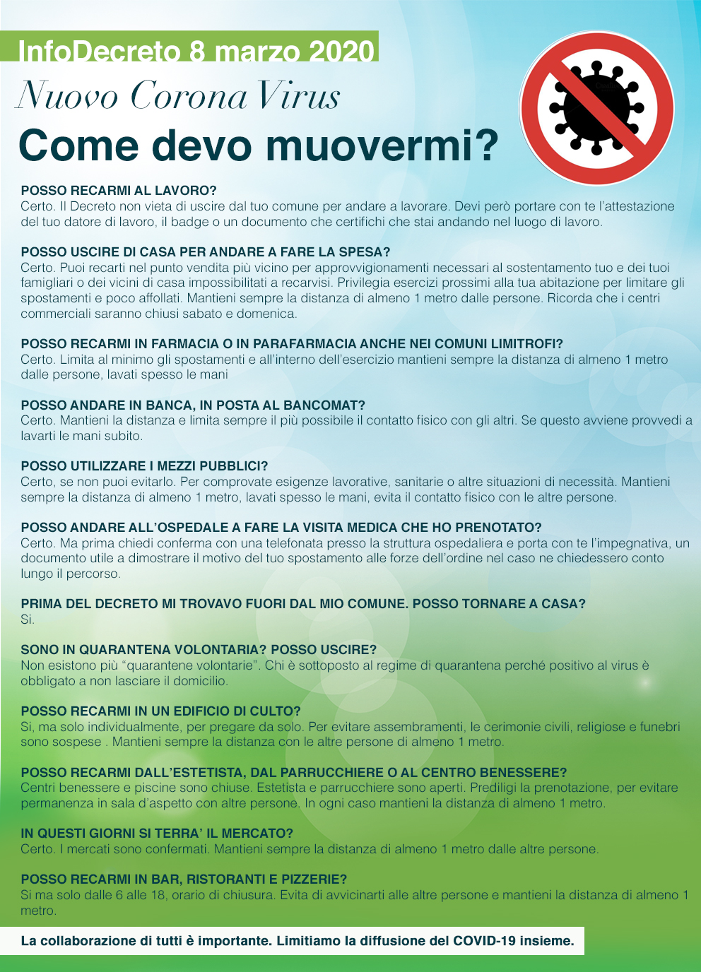 Si invita la cittadinanza a prendere visione del Decreto della Presidenza del Consiglio dei Ministri del giorno 8 marzo 2020 relativo le misure urgenti di contenimento del contagio nella Provincia di Alessandria. Si invita la popolazione ad osservare con rigore le disposizioni contenute.