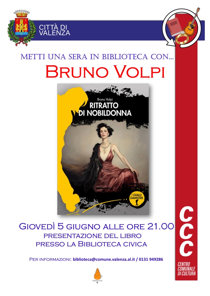 Il primo appuntamento di giovedì 5 giugno alle ore 21.00 avrà come protagonista l’autore Bruno Volpi con il suo romanzo noir Ritratto di nobildonna (ed. Damster, 2025) che è stato premiato come miglior romanzo in occasione del concorso Giallo Festival 2025 a Bologna.