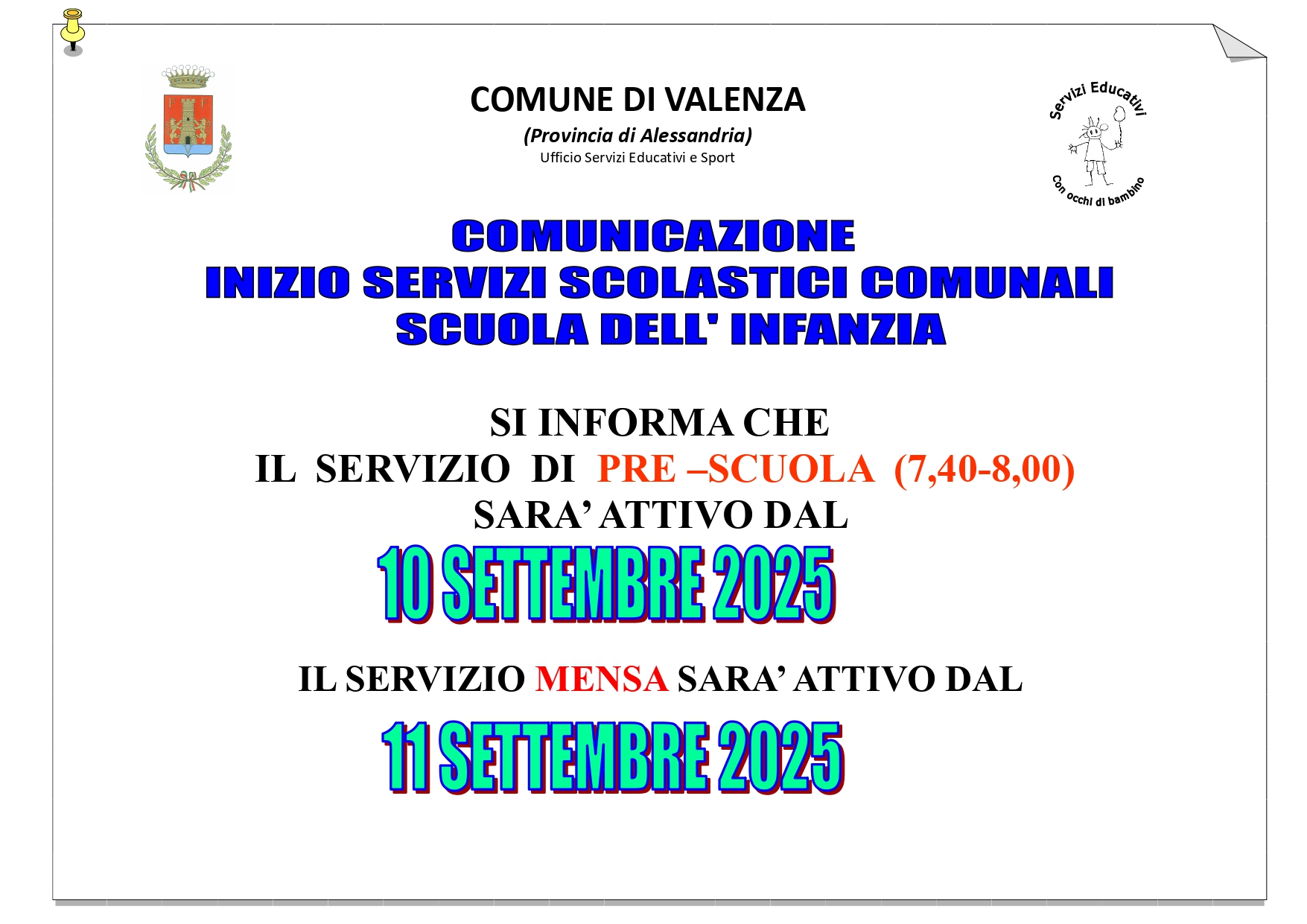 Inizio Servizi Scolastici della Scuola dell'Infanzia