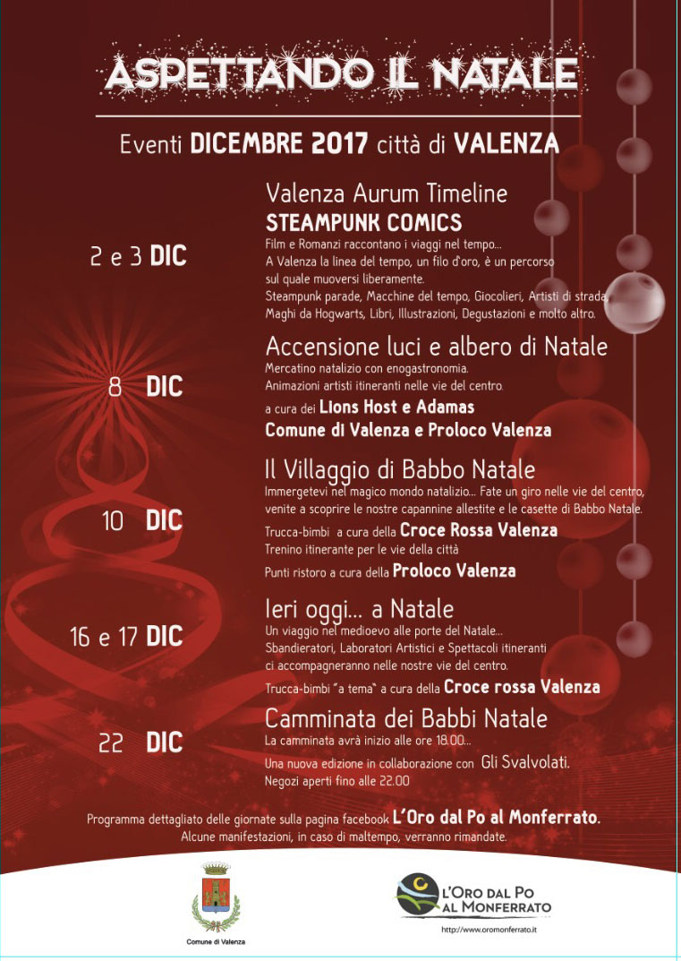 In allegato,, il programma delle iniziative prenatalizie organizzate dai commercianti valenzani, dalla Pro Loco, in collaborazione col Comune.