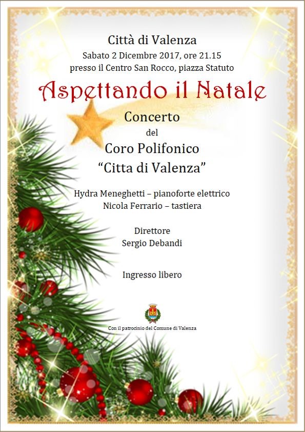 Sabato 2 Dicembre alle ore 21.15 presso il Centro San Rocco in Piazza Statuto a Valenza, avrà luogo il concerto della corale polifonica "Città di Valenza".