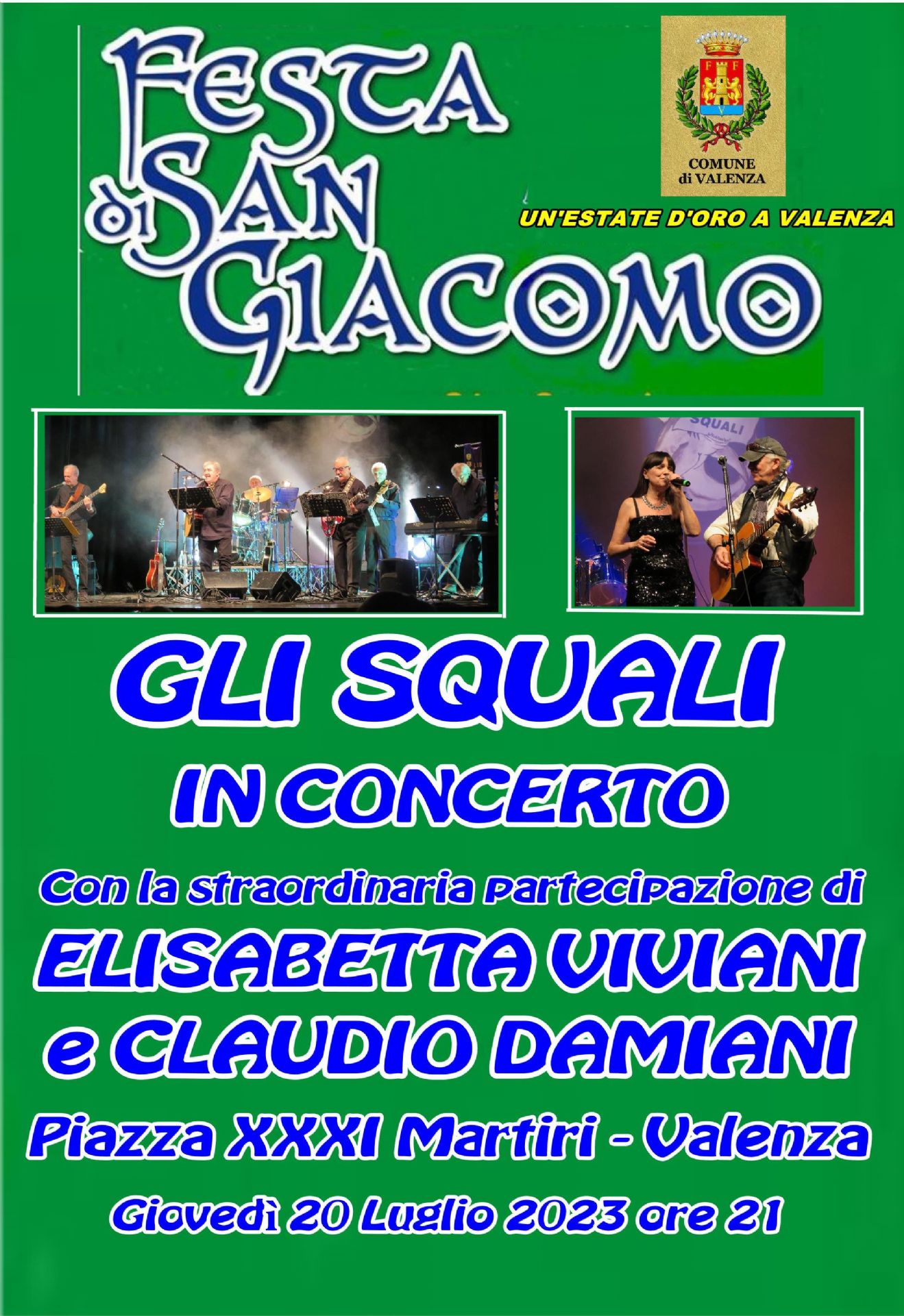 Ricordiamo l'appuntamento di Giovedì 20 luglio "Aspettando San Giacomo" con il concerto de Gli squali e la partecipazione straordinaria di Elisabetta Viviani e Claudio Damiani che si esibiranno dalle ore 21.45 in Piazza XXXI Martiri.