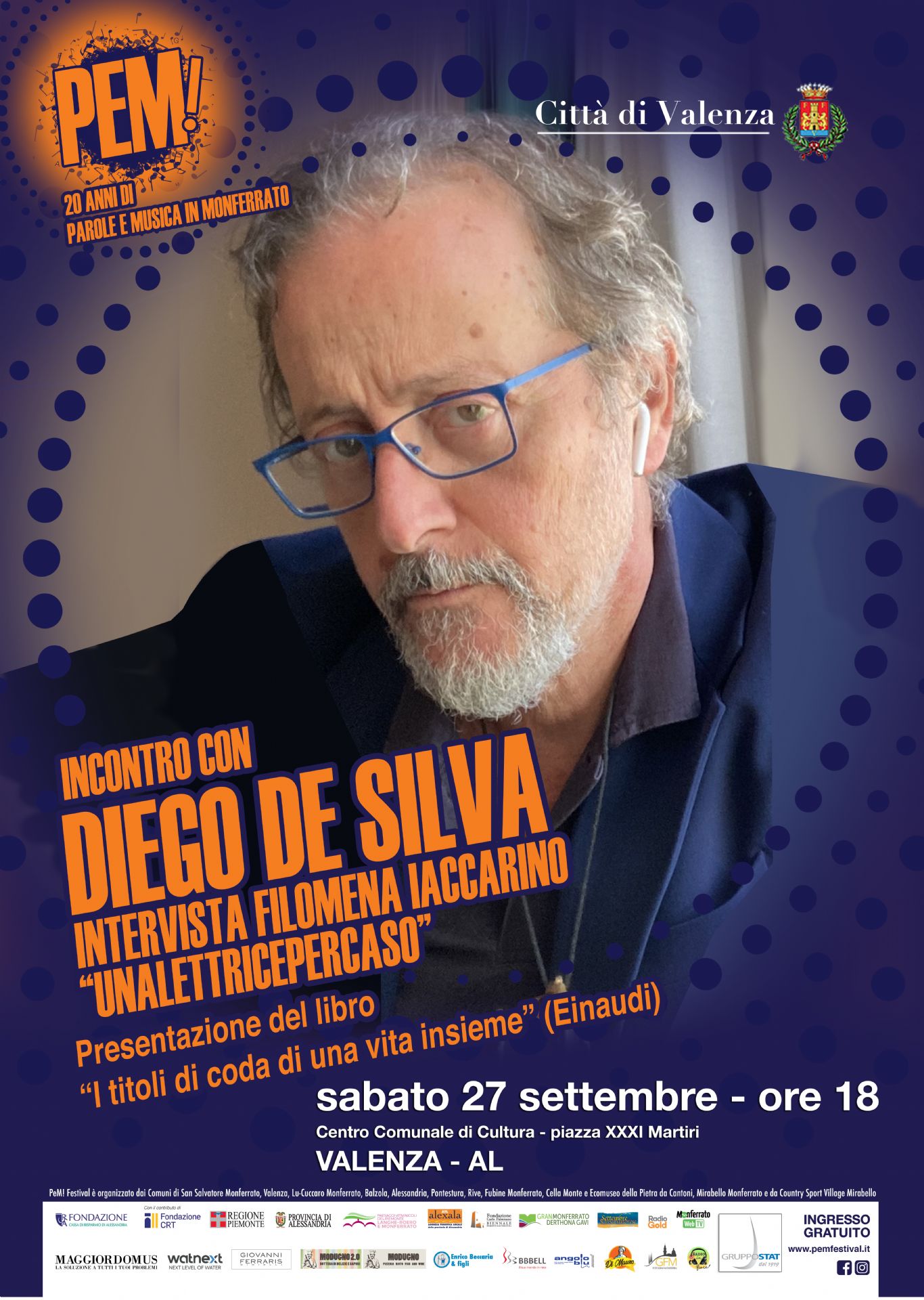 DIEGO DE SILVA a PeM - sabato 27 settembre ore 18:00 presso il Centro Comunale di Cultura di Valenza.