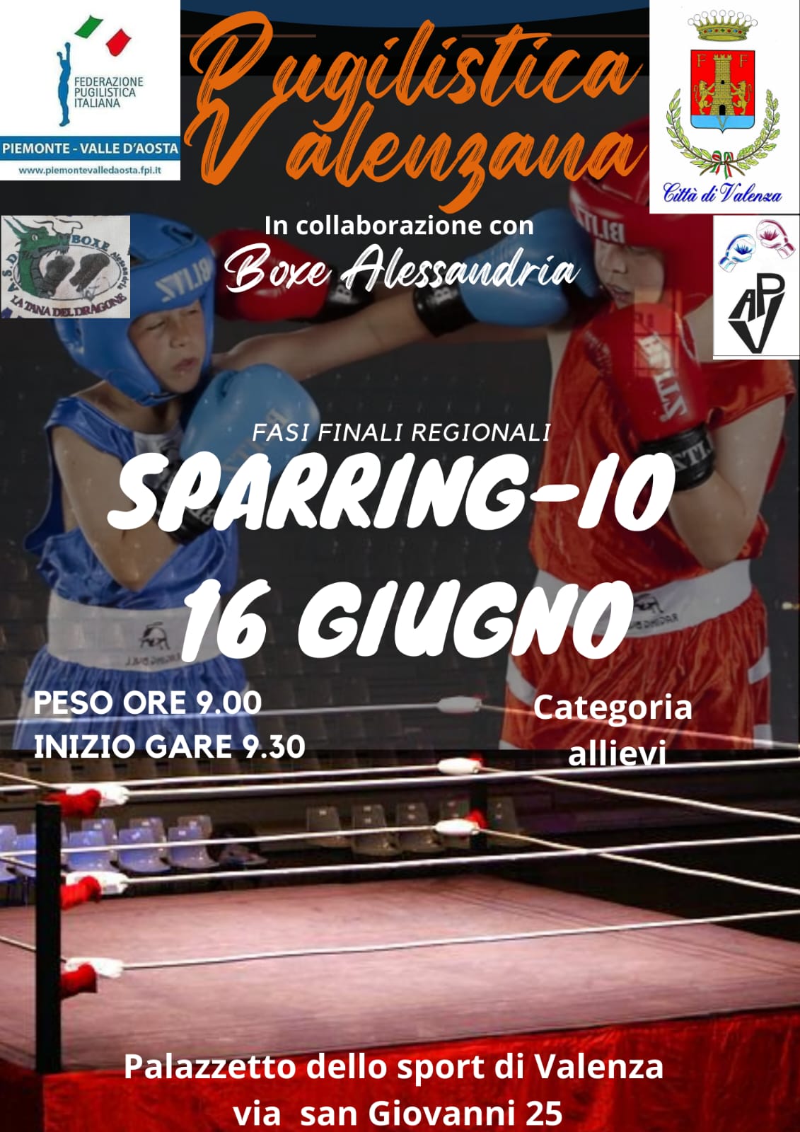 Fasi finali regionali di SPARRING-IO (trofeo CONI di pugilato 9-13 anni), domenica 16 giugno presso il Palazzetto dello sport (Via San Giovanni 25, Valenza).