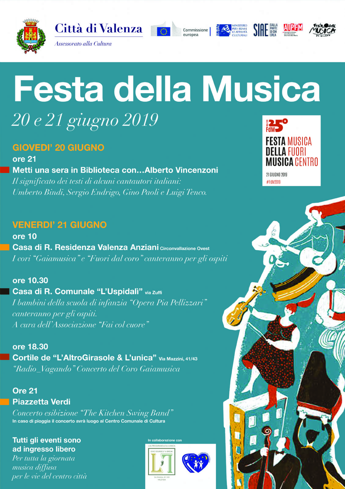 Anche quest’anno il Comune di Valenza aderisce alla “Festa della Musica” che si celebra in tutta Europa il 21 Giugno.