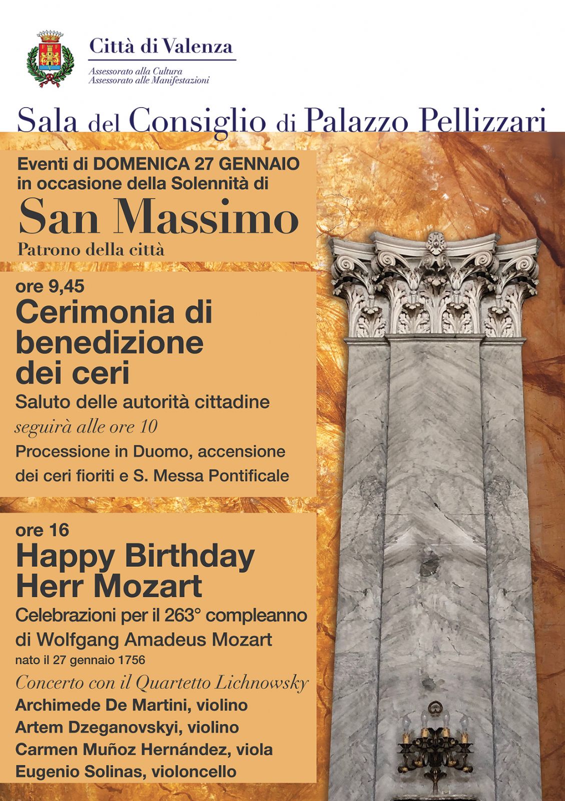 Nel pomeriggio, alle ore 16,00, gli Assessorati alla Cultura e alle Manifestazioni hanno voluto organizzare un concerto nella sala consiliare per celebrare il 263° compleanno di Wolfgang Amadeus Mozart, nato proprio il 27 gennaio 1756.