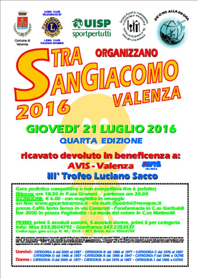 Gara podistica competitiva e non, ritrovo in Piazza Gramsci alle ore 18.30