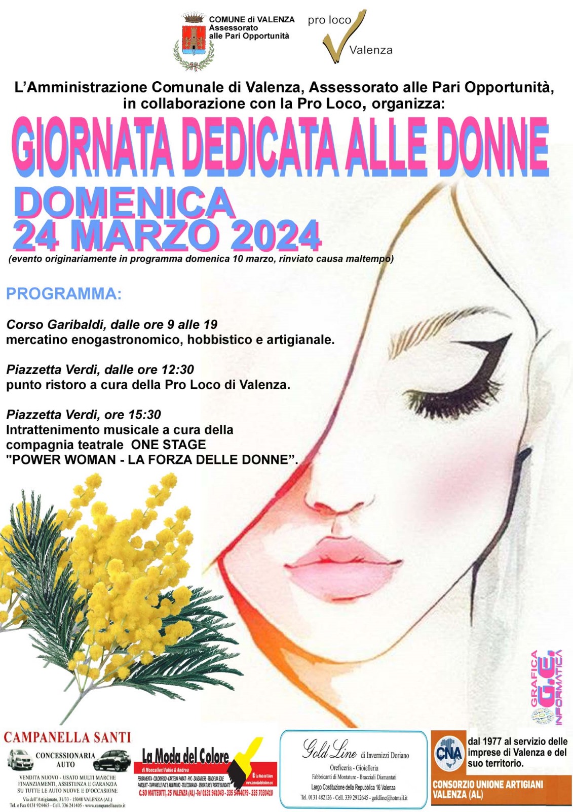 Domenica 24 marzo sarà una “Giornata dedicata alle donne” a Valenza. Per l’occasione i negozi del centro saranno aperti e, alle ore 11:00 del mattino.
