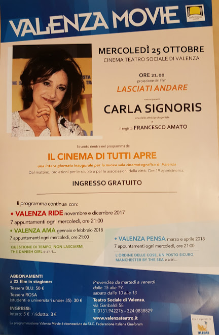 SERA (ore 21): proiezione-evento del film LASCIATI ANDARE alla quale parteciperanno anche il regista FRANCESCO AMATO e l'attrice CARLA SIGNORIS, INGRESSO GRATUITO