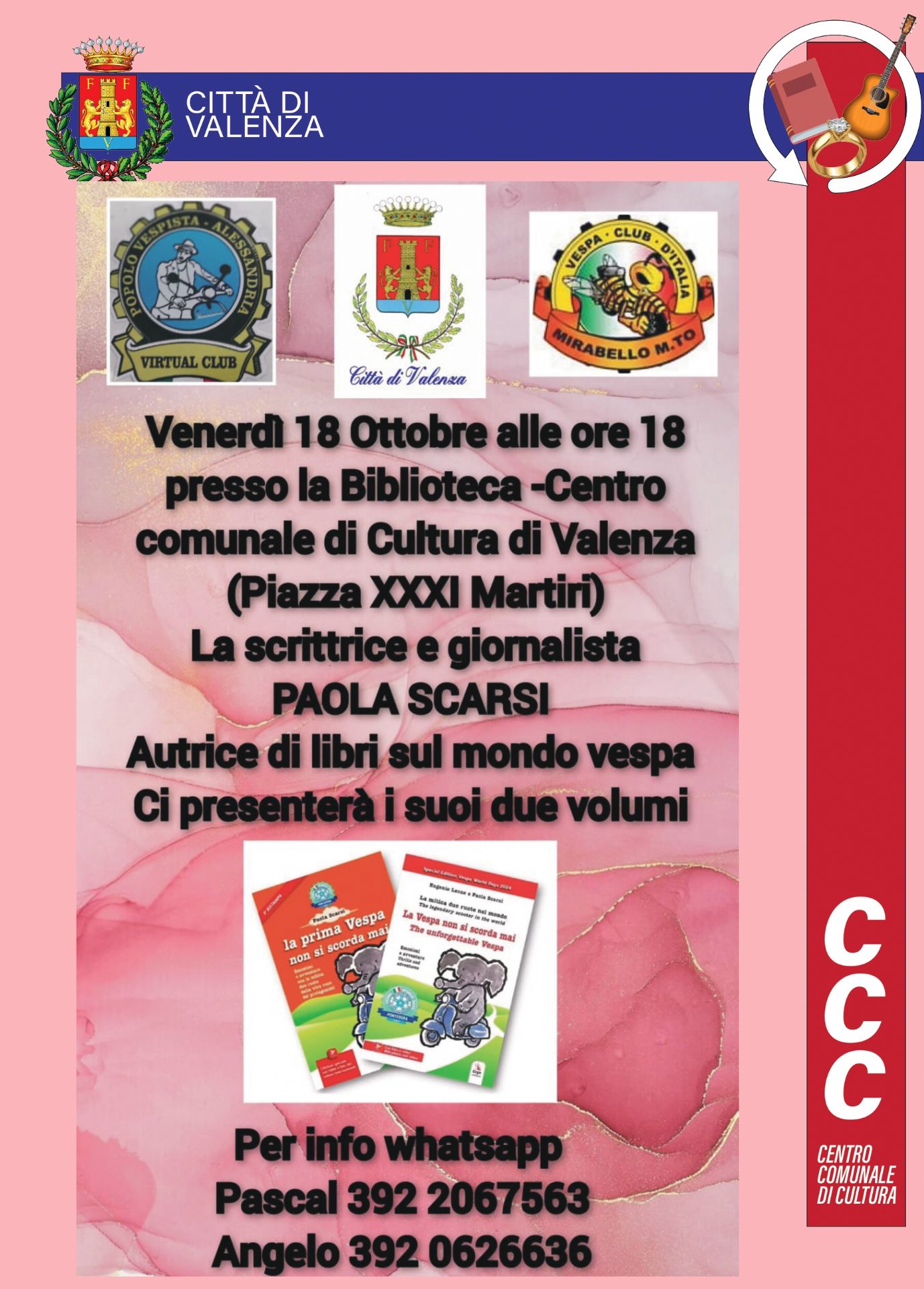 Venerdì 18 Ottobre alle ore 18.00 la scrittrice e giornalista Paola Scarsi, autrice di libri sul mondo vespa, presenterà i suoi due volumi "La prima Vespa non si scorda mai" e "La Vespa non si scorda mai - The unforgettable Vespa".