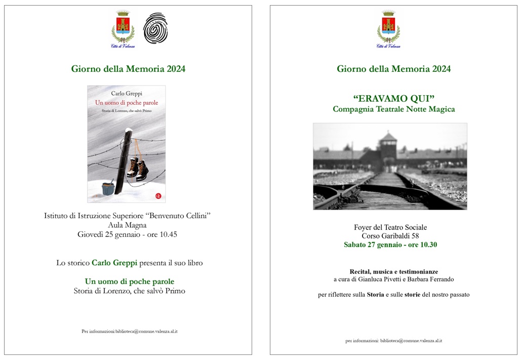 In occasione del Giorno della Memoria 2024 il Comune di Valenza presenta