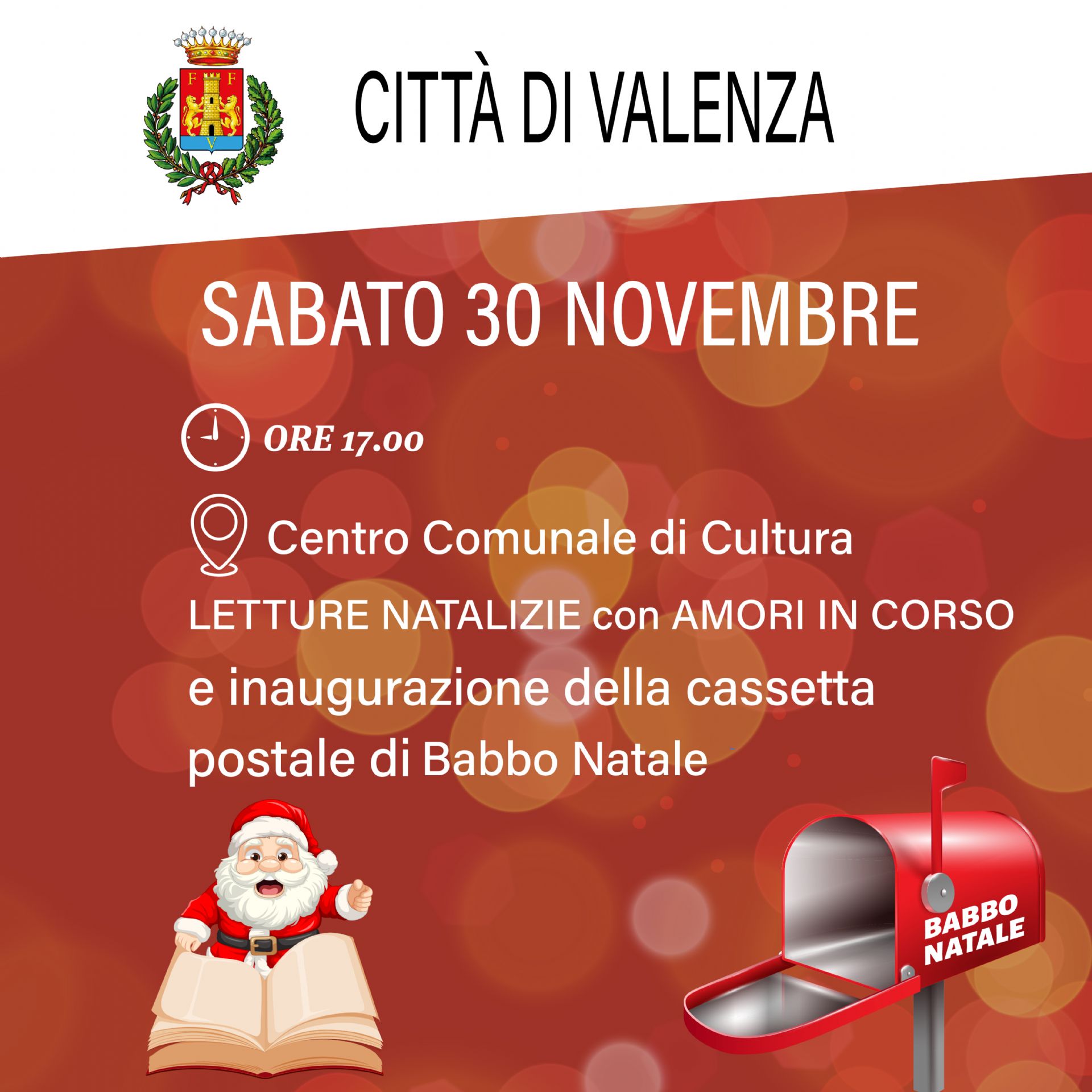 Sabato 30 Novembre, ore 17,00, presso il centro Comunale di Cultura, Letture natalizie con il gruppo "Amori in Corso" e inaugurazione della cassetta postale di Babbo Natale.