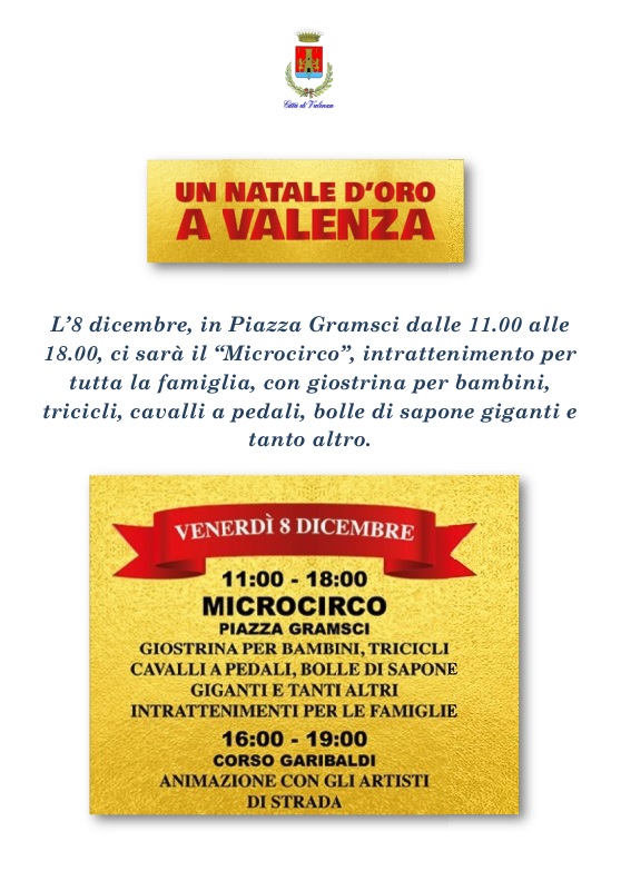 Il giorno dell'Immacolata dalle 11:00 alle 18:00 vi aspettiamo al "Microcirco", iniziativa nell'ambito di "Un Natale d'oro a Valenza"