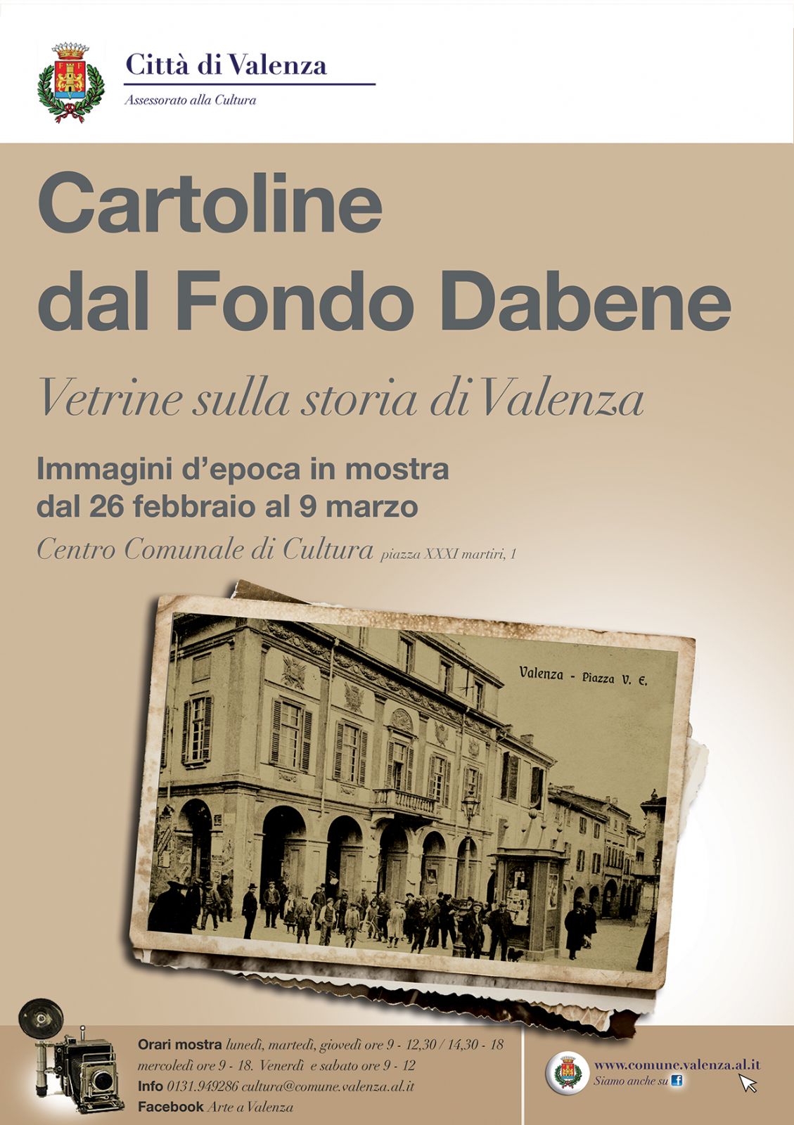 Una interessante selezione della raccolta di cartoline d’epoca, tornerà ad essere esposta nella piazzetta di Palazzo Valentino,da martedì 26 febbraio fino a sabato 9 marzo, in occasione della mostra Cartoline dal Fondo Dabene:vetrine sulla storia di Valenza:, organizzata dalla Biblioteca Civica di Valenza e curata dallo stesso Carlo Dabene.