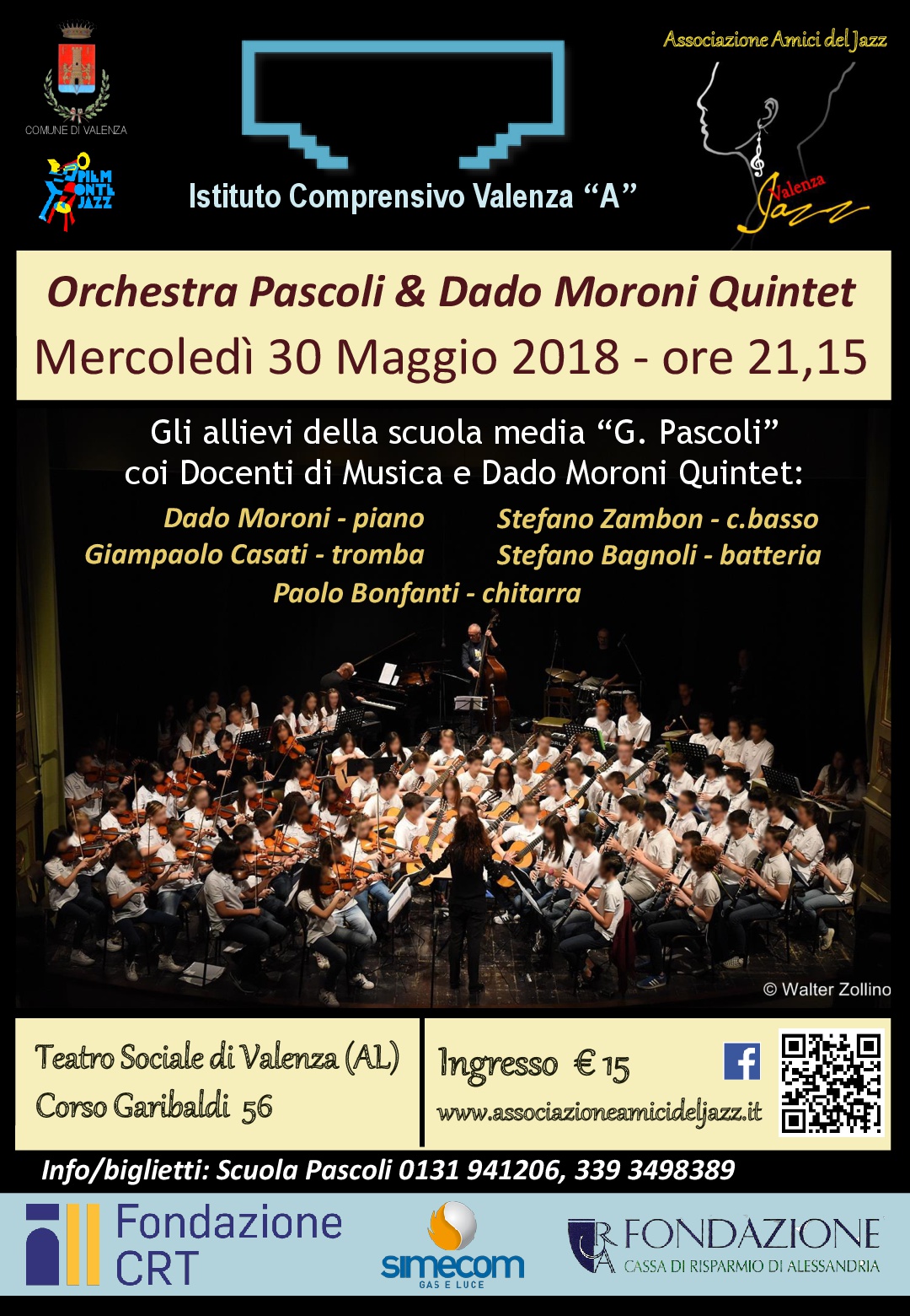 A chiusura dell'anno scolastico della scuola di musica anche quest'anno al Teatro Sociale di Valenza si terrà il grande concerto dell’orchestra della Scuola Media Pascoli con Dado Moroni e il suo gruppo che avrà il piacere di ospitare anche il chitarrista blues Paolo Bonfanti.