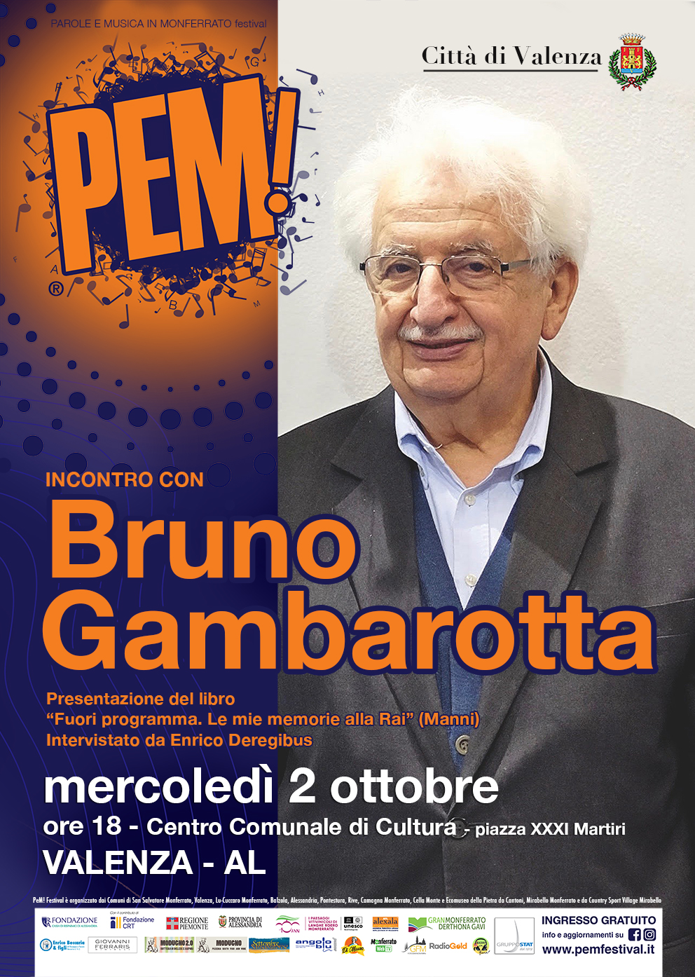 Partendo dal suo libro di memorie “Fuori programma”, Bruno Gambarotta, intervistato da Enrico Deregibus, racconterà dei suoi anni in Rai, dal 1962 al 2011, durante i quali si è districato, con il suo ironico aplomb, tra capricciose stelle dello spettacolo, grigi funzionari ancorati alle loro scrivanie e ruvide maestranze. Il memoir di un uomo che ha attraversato la seconda metà del Novecento da un osservatorio più unico che raro.