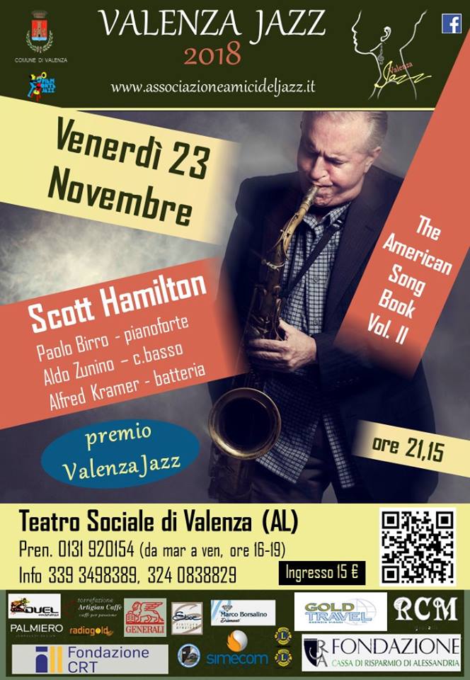 Nel corso della serata verrà consegnato a Scott Hamilton il premio Valenza Jazz 2018.