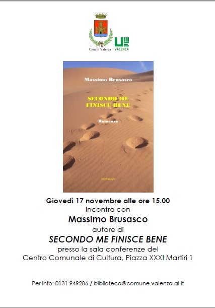 Massimo Brusasco che, in qualità di giornalista ha tante volte raccontato gli eventi della nostra città, è oggi protagonista con il suo nuovo romanzo che siamo lieti non solo di presentare al Centro Comunale di Cultura ma anche di accogliere tra i volumi che la nostra Biblioteca offre ai lettori valenzani” così commentano il Sindaco Maurizio Oddone e l’Assessore ai Beni Culturali Alessia Zaio.