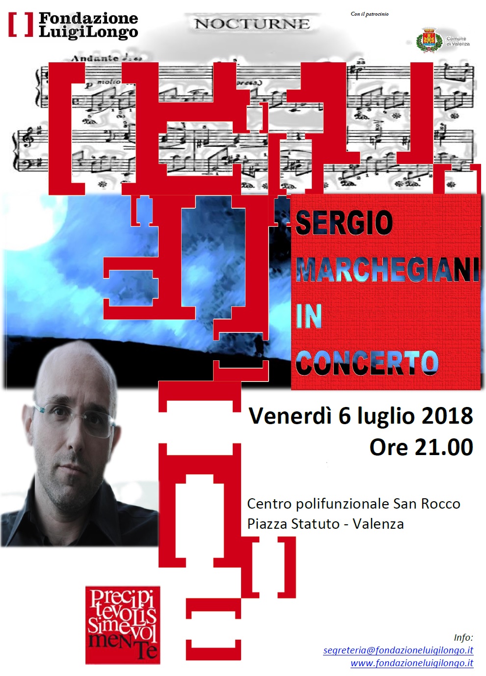 Venerdì 6 luglio alle ore 21.00 presso il Centro Polifunzionale San Rocco di Piazza Statuto a Valenza, la Fondazione Luigi Longo con il patrocinio del Comune di Valenza, presenta il concerto di pianoforte del Maestro Sergio Marchegiani.