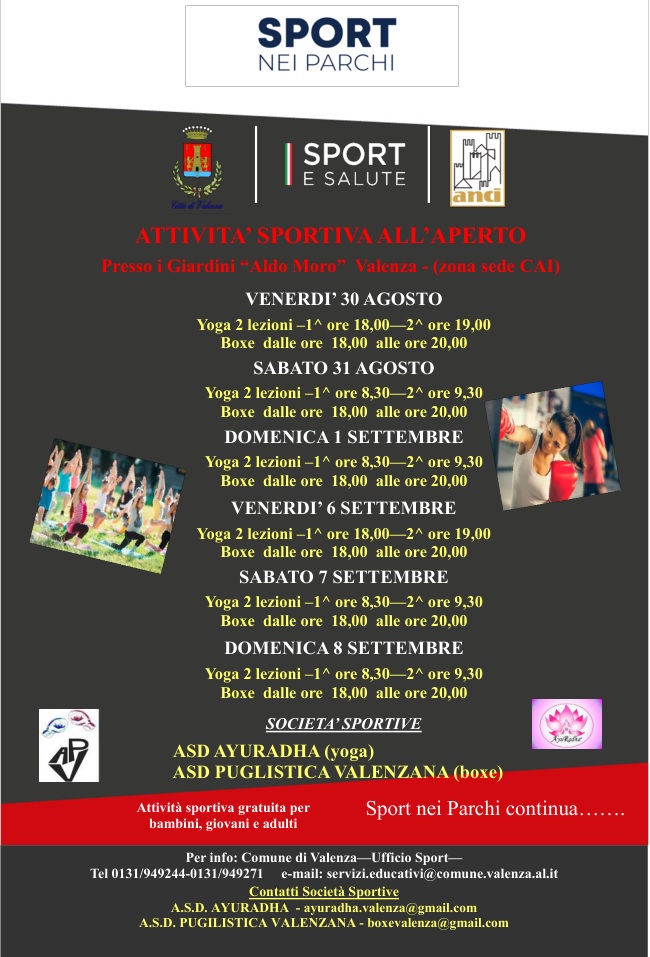 In locandina il dettaglio delle attività che si svolgeranno l'ultimo weekend di agosto e il primo di settembre.