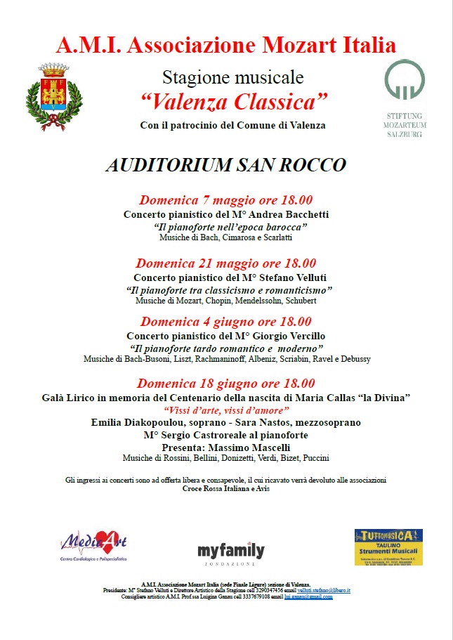 Condividiamo il programma concertistico della stagione musicale 2023 "Valenza Classica" proposto dall'Associazione Mozart Italia e che si svolgerà presso l'Auditorium San Rocco, via Roberti 9 Valenza.