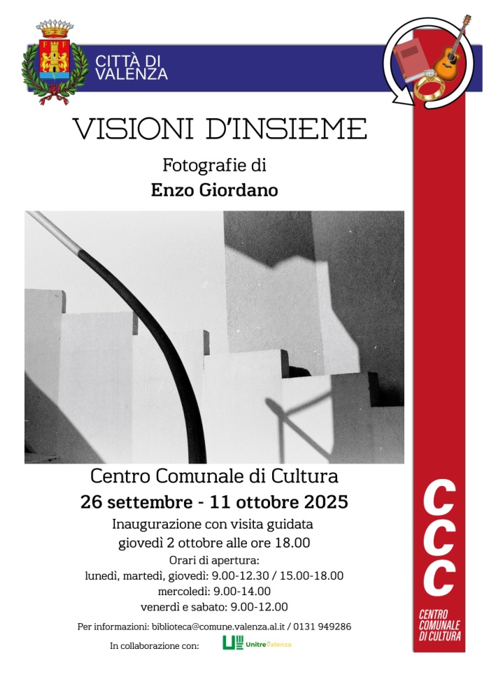 Da venerdì 26 settembre il Centro Comunale di Cultura ospiterà la mostra “Visioni d’insieme”, fotografie di Enzo Giordano, iniziativa espositiva organizzata in collaborazione con UNITRE Valenza.
