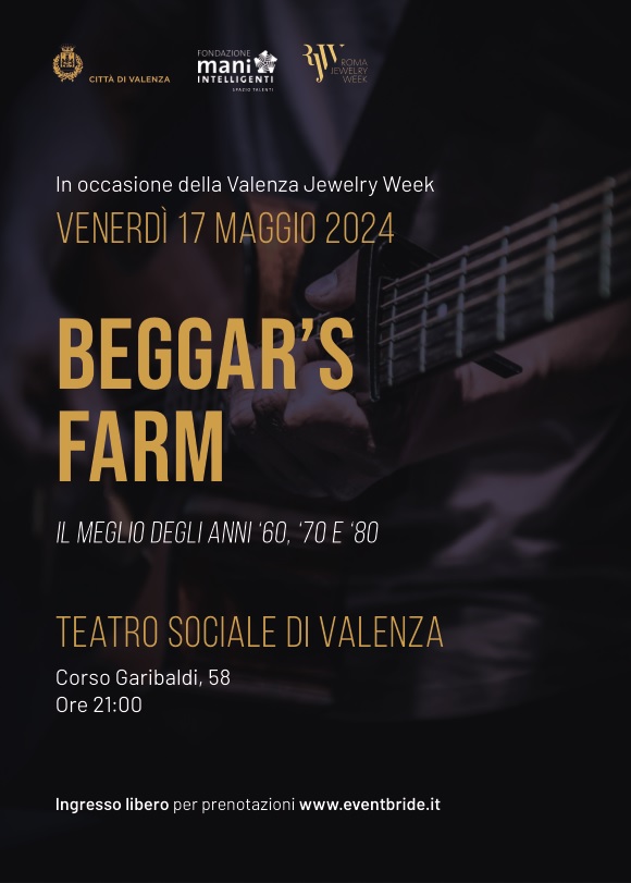 In occasione della Valenza Jewelry Week la Beggar's Farm presenta al Teatro Sociale di Valenza dalle ore 21:00 "Il meglio degli anni 60' 70' e 80'