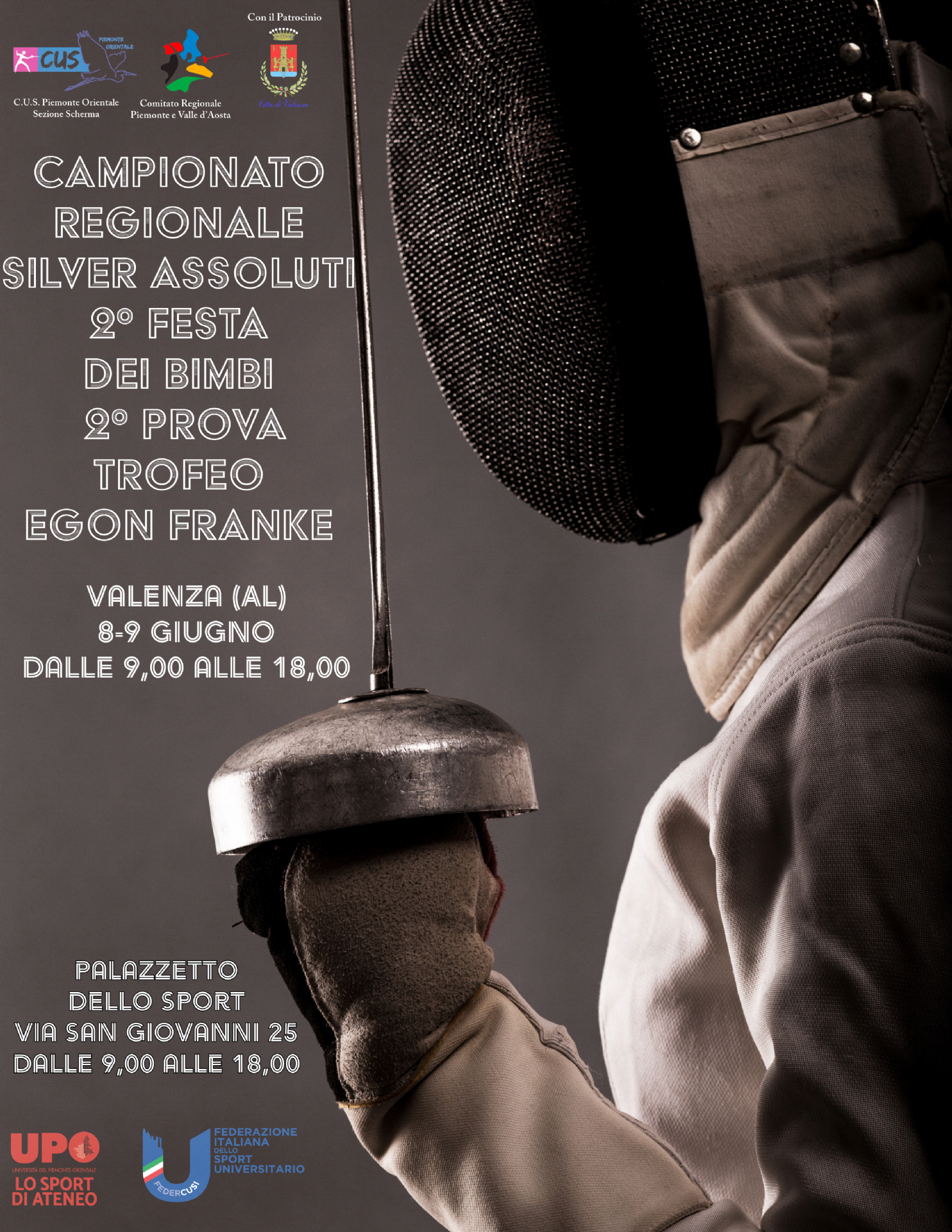 Sabato 8 e domenica 9 giugno dalle ore 09:00 sino alle 18:00 in via san Giovanni 25 presso il Palazzetto dello Sport di Valenza si terrà il campionato regionale assoluto di scherma - Trofeo Egon Franke U 14.