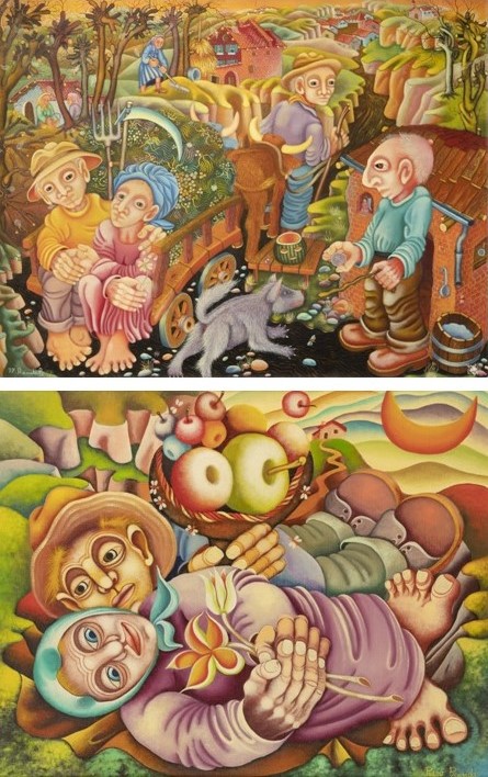 Così accanto alla riproduzione del dipinto intitolato “L’ultem di ad Carvà” troveranno ora posto anche le repliche dei dipinti “A turnanda dan ti camp, ancuntrami al setmì”, di cui è stato scelto un particolare, e “Peder ai ofr al so amur ala Pina call’aceta cun candur”.