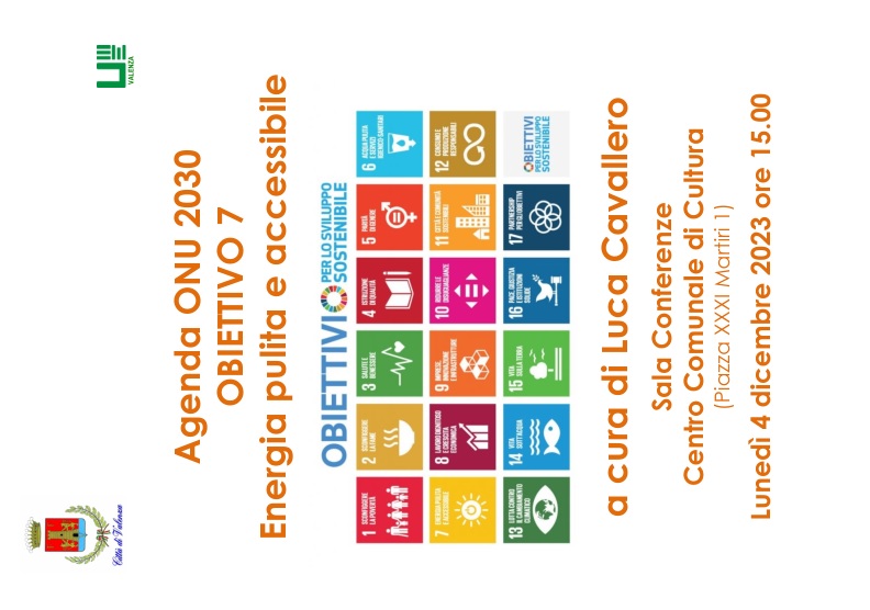 Lunedì 4 dicembre 2023 alle ore 15.00, presso la sala conferenze del Centro Comunale di Cultura, si terrà la quarta conferenza dedicata agli obbiettivi dell’Agenda ONU 2030 per lo sviluppo sostenibile.