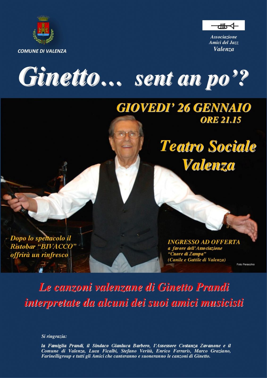 L'ingresso è a offerta a favore dell'Ass. Cuore di Zampa, Canile Gattile di Valenza.