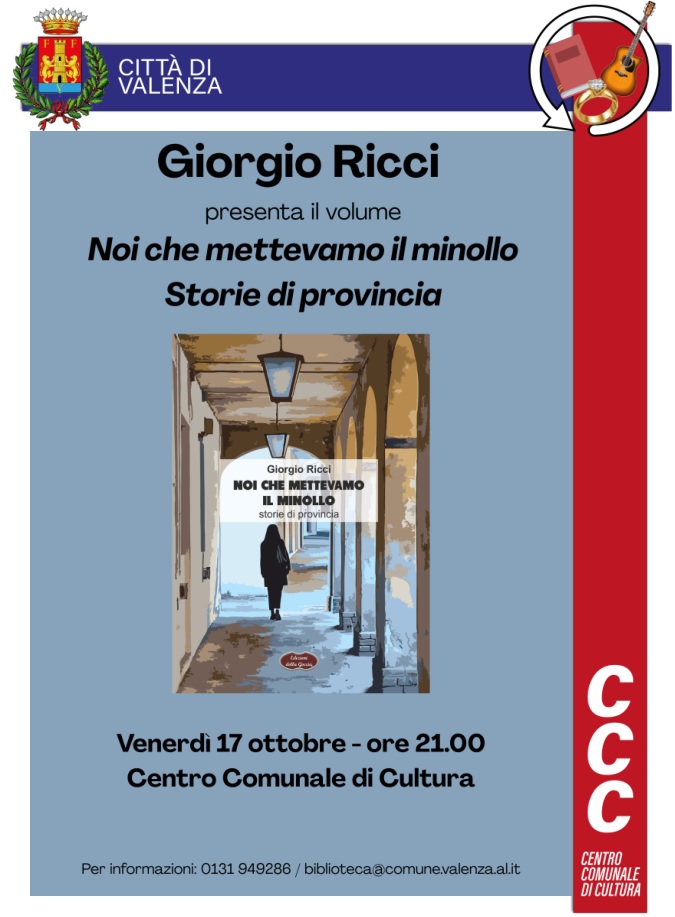Venerdì 17 ottobre alle ore 21.00 presso il Centro Comunale di Cultura, Giorgio Ricci presenterà il suo ultimo romanzo dal titolo “Noi che mettevamo il minollo – Storie di provincia” (Edizioni della Goccia 2025).