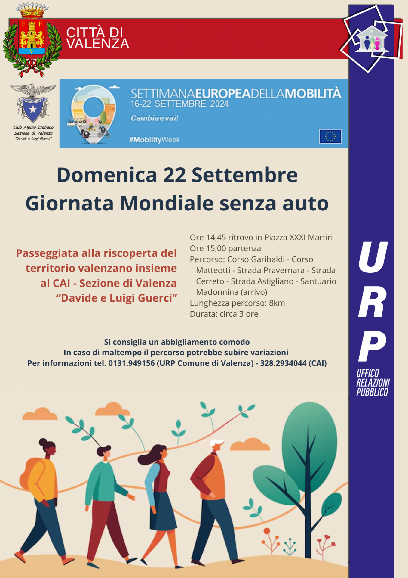 Anche quest’anno il Comune di Valenza aderisce alla Settimana Europea Della Mobilità (16-22 settembre), la campagna di sensibilizzazione più importante della Commissione Europea sulla mobilità urbana sostenibile che promuove il cambiamento comportamentale a favore della mobilità attiva, del trasporto pubblico e di altre soluzioni di trasporto pulite e intelligenti.