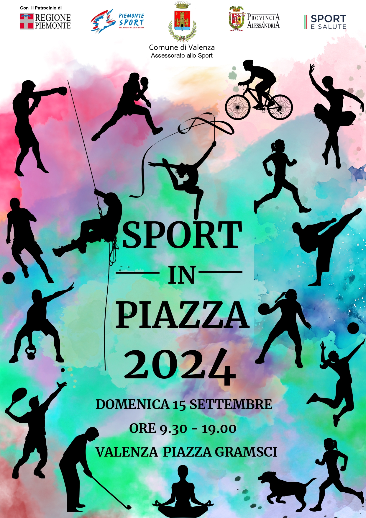 “Sport in Piazza” è un evento organizzato dall’Amministrazione Comunale - Assessorato alla Sport, che avrà luogo domenica 15 settembre dalle ore 9.30 alle ore 19.00 in Piazza Gramsci a Valenza.